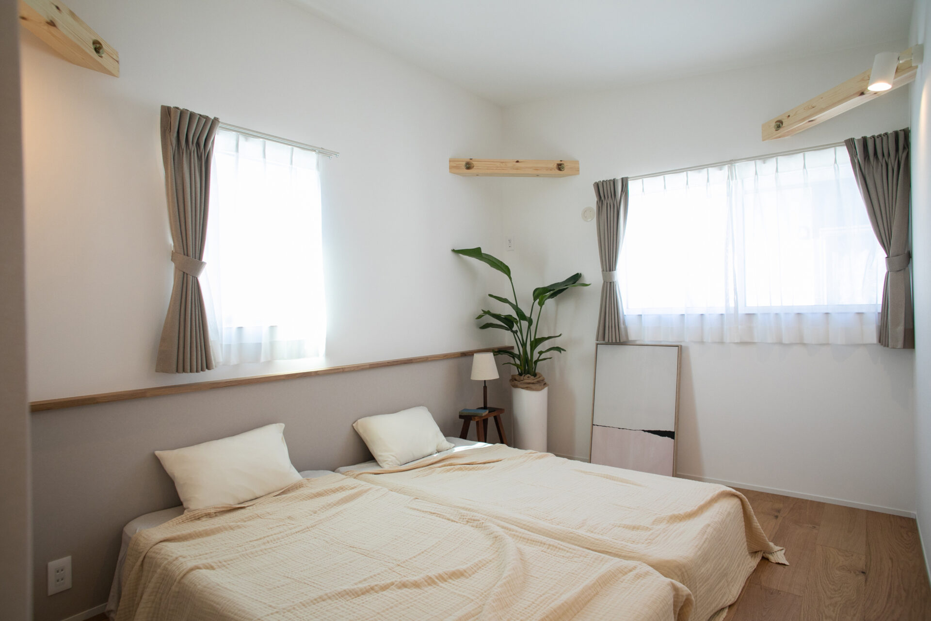 室内のインテリアはシンプルにまとめ、家具で色どりを添えながら飽きのこない空間で新生活が楽しめます。