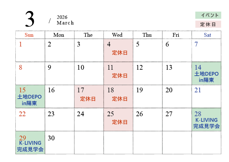 2026年3月jigsawイベント&営業日のお知らせです。 ●月1回の火曜定休日は3/17(火)となります。 —–—–—–—–—– 公式LI