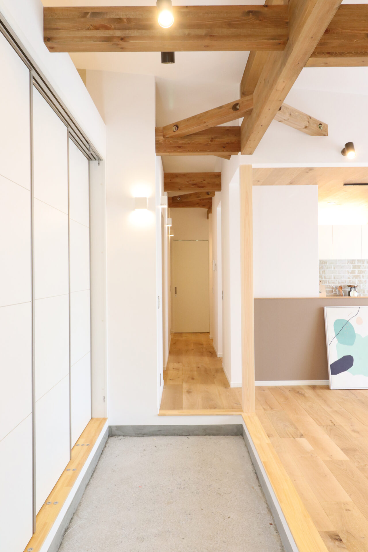 玄関から土間が続く、暮らしやすさがちょうどいい平家の住まい。