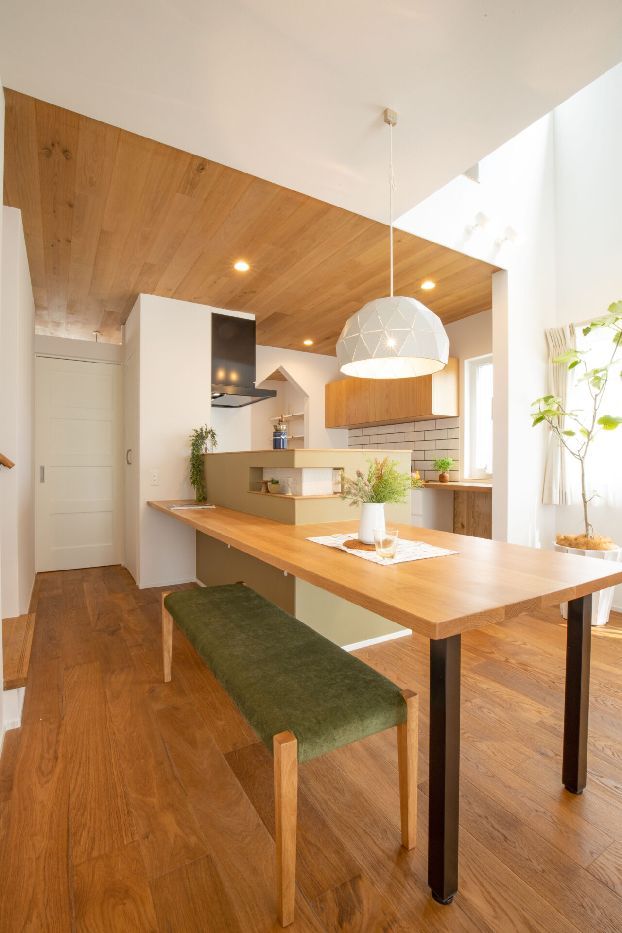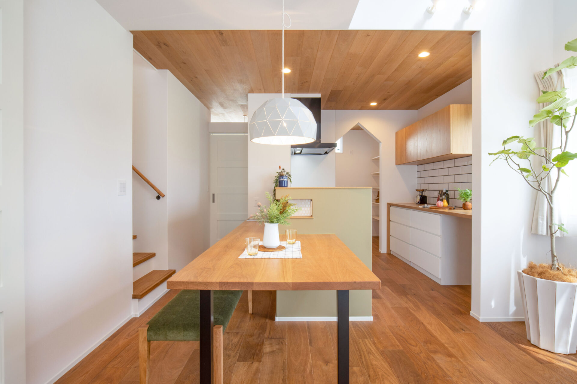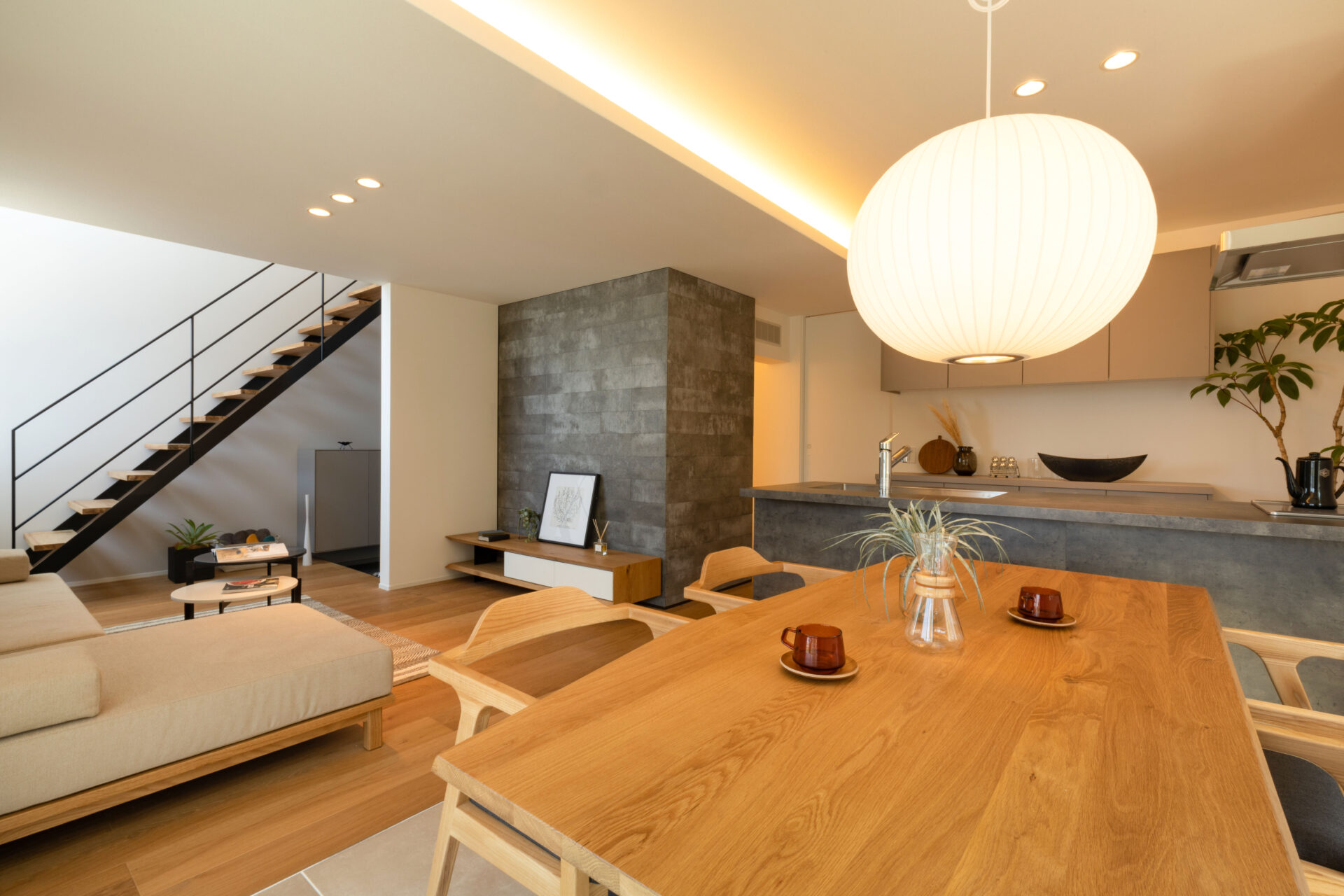 シンプルなインテリアに板張り、タイル、アイアンをアクセントに用い、上質なナチュラルスタイルに仕上げました。