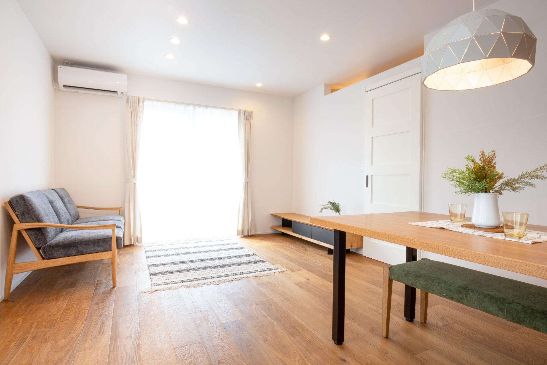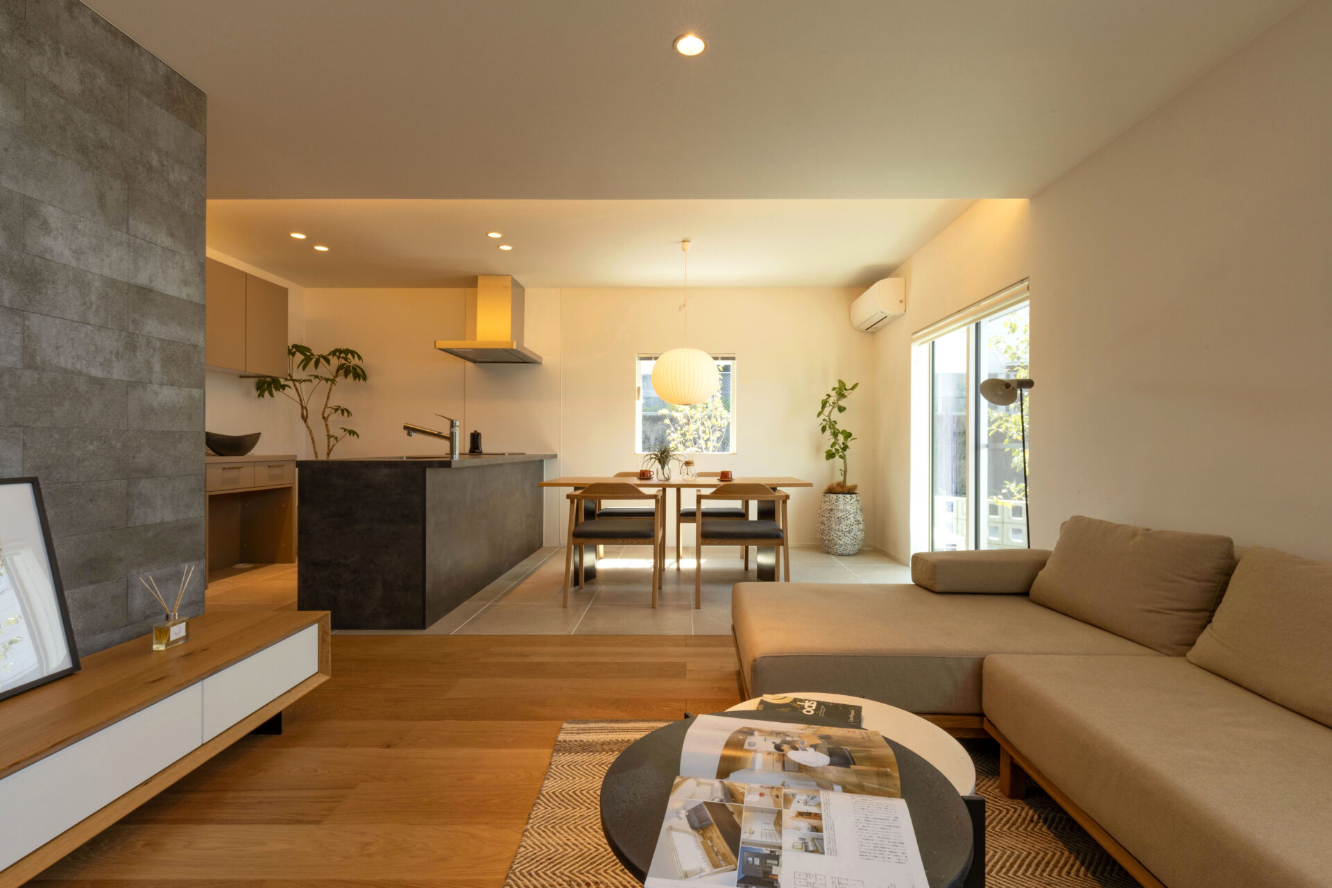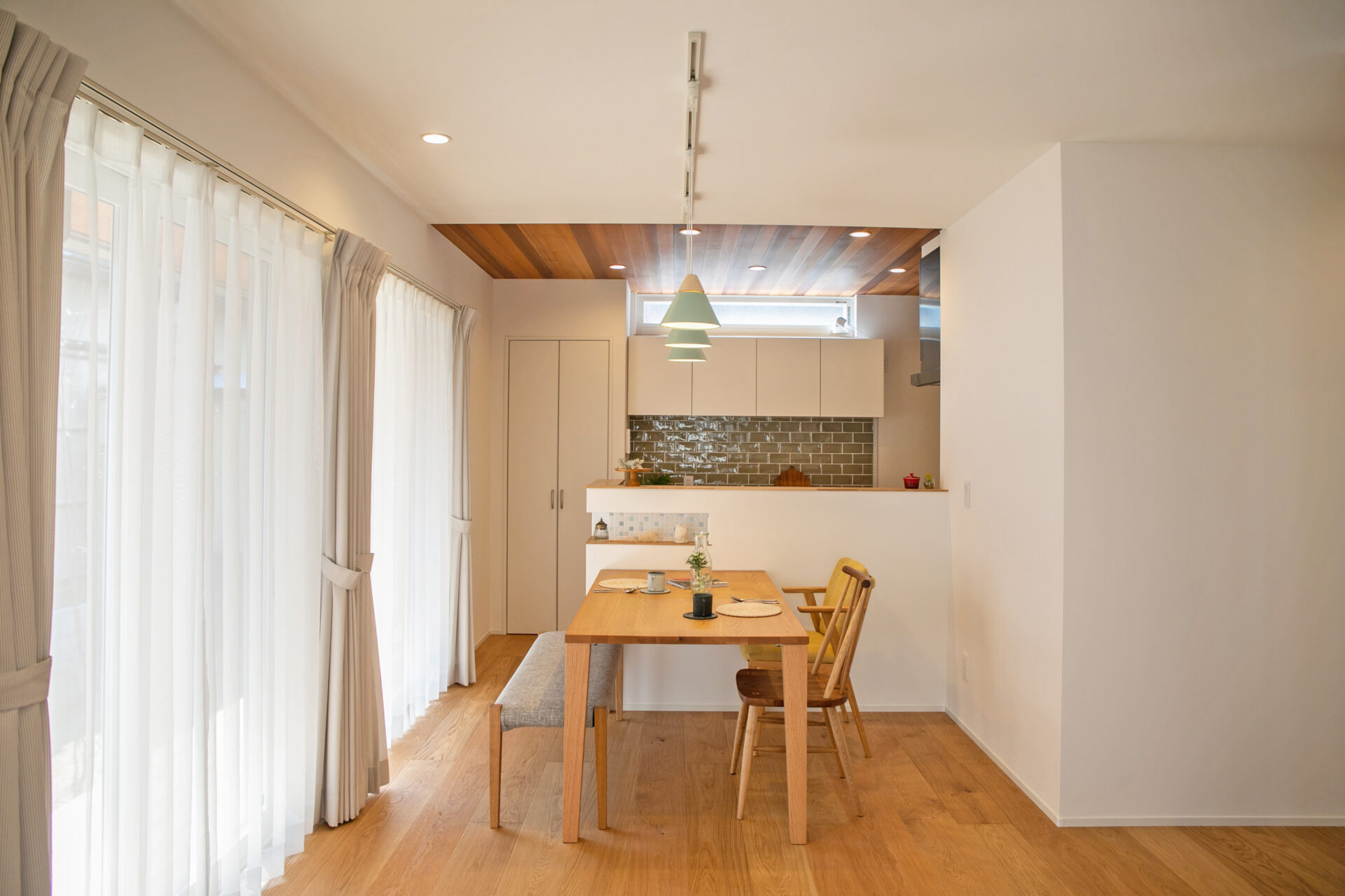 シンプルなインテリアに板張り、タイル、アイアンをアクセントに用い、上質なナチュラルスタイルに仕上げました。