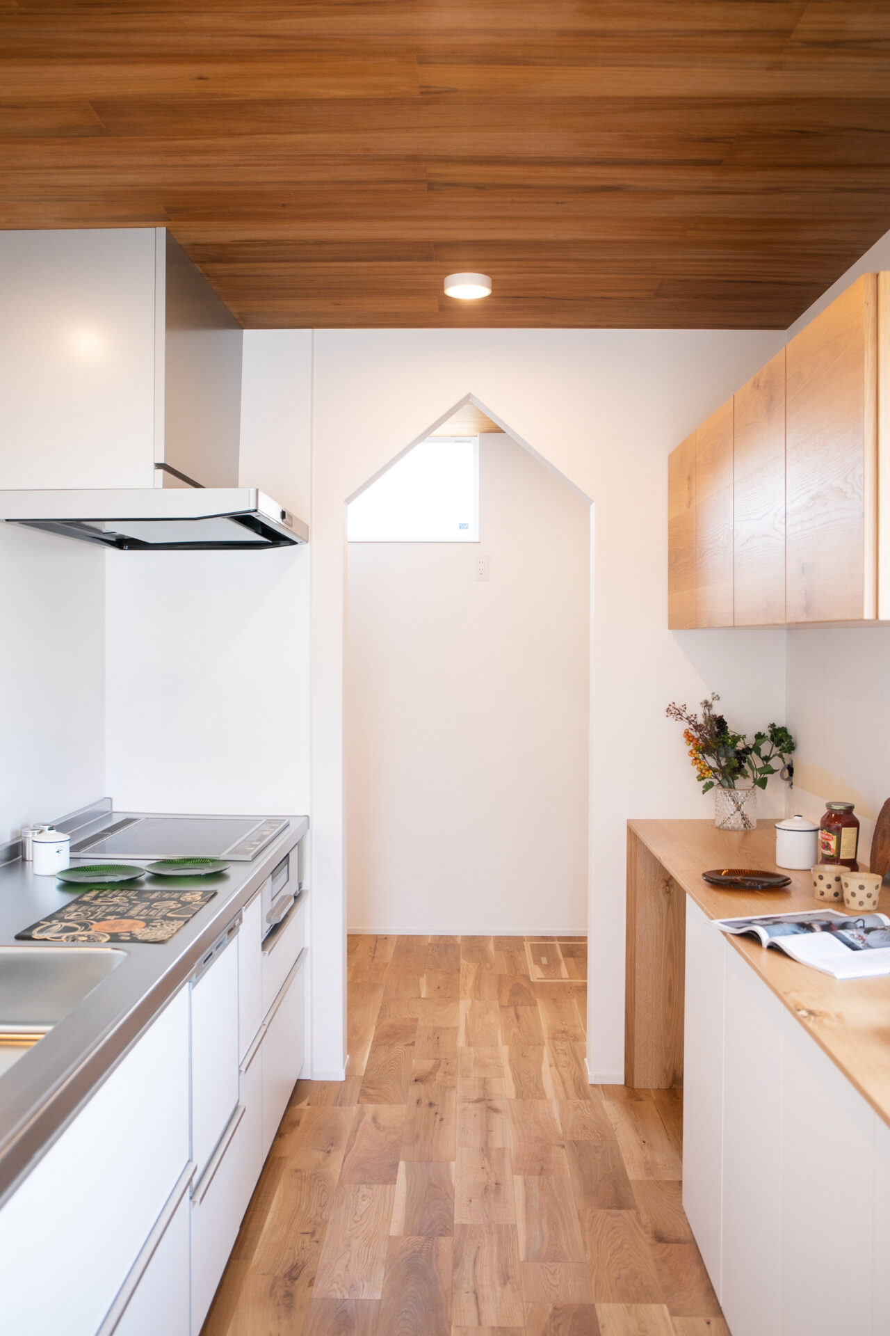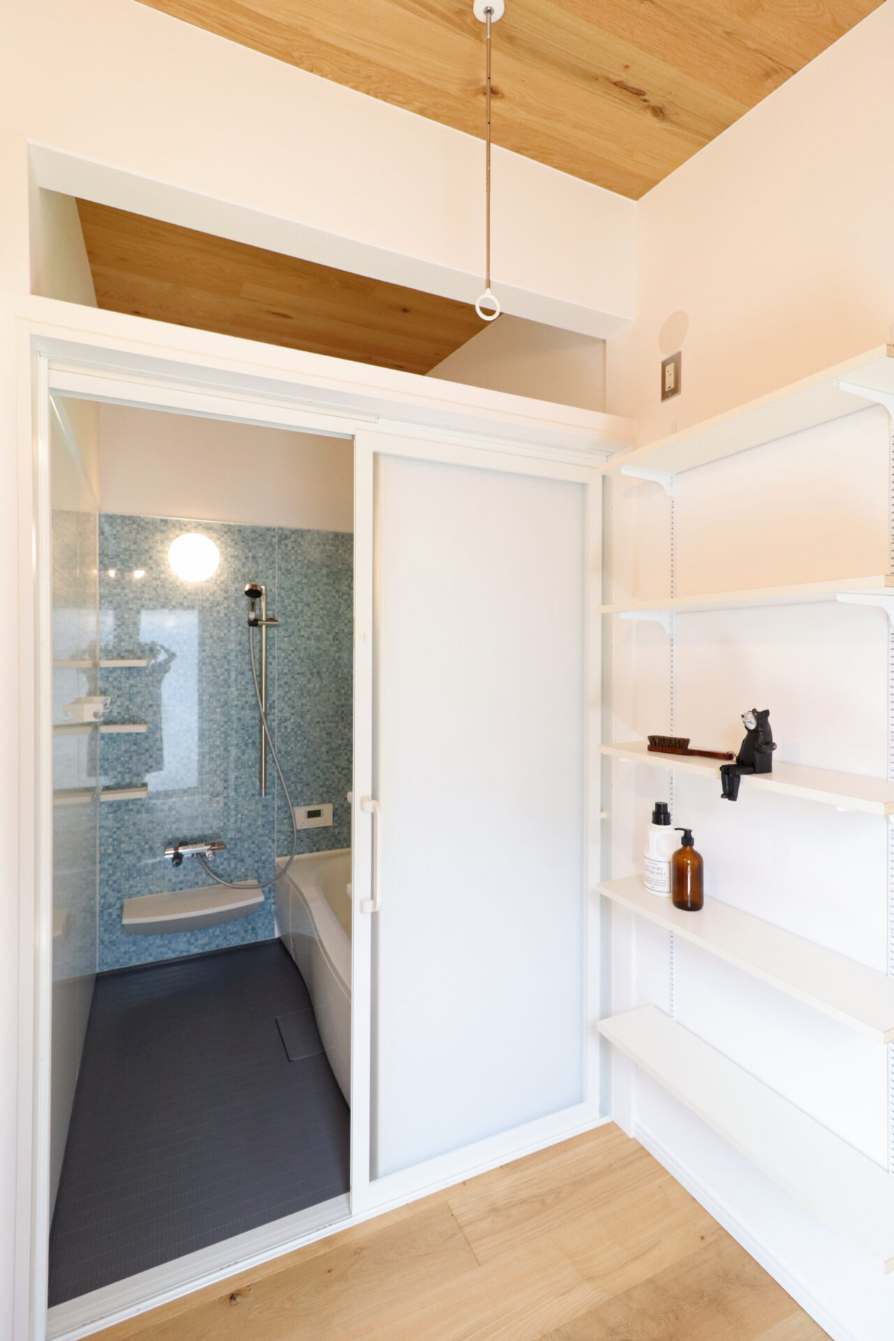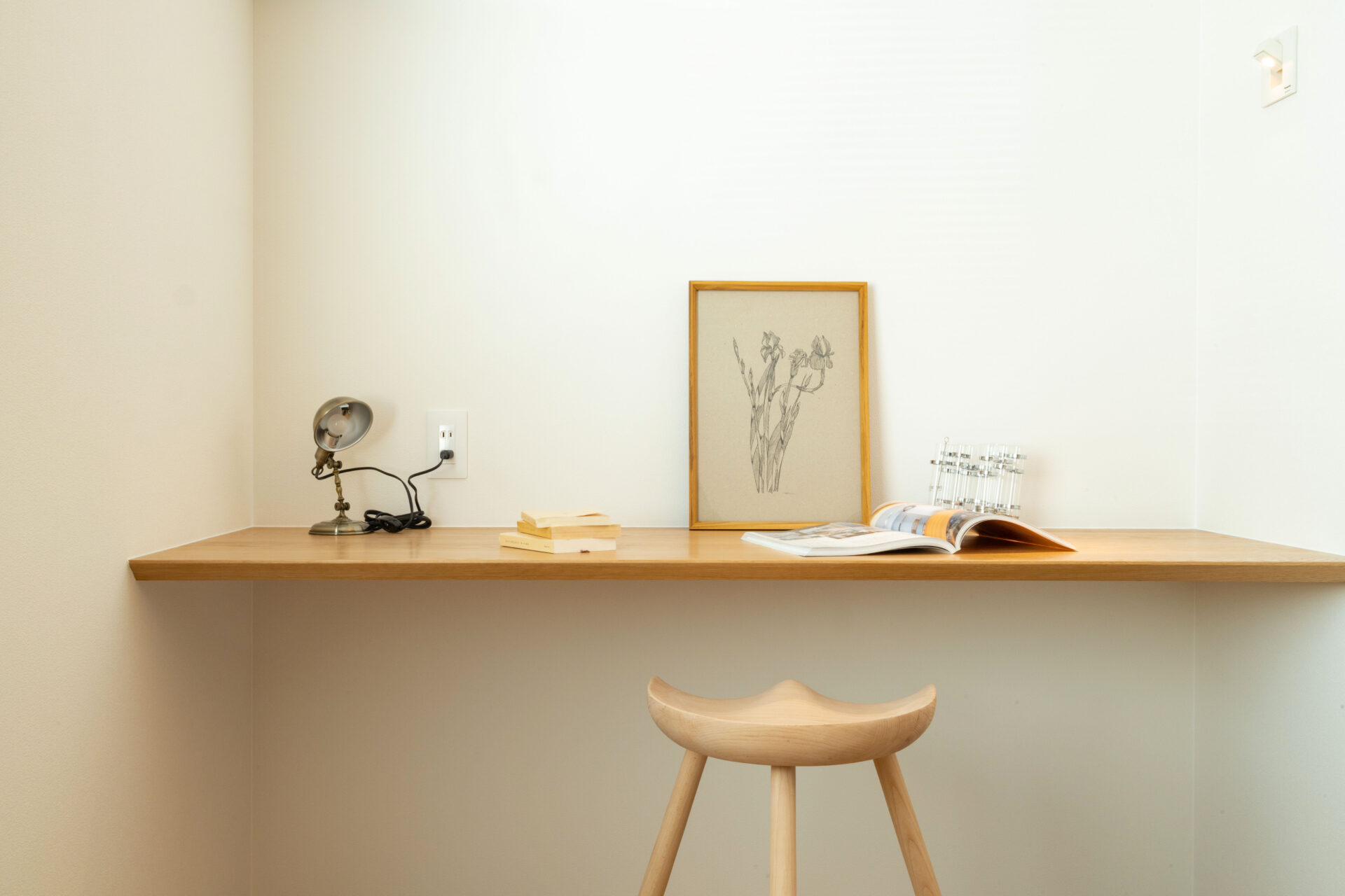 造作の棚や収納で、スッキリと暮らせる住まいです。