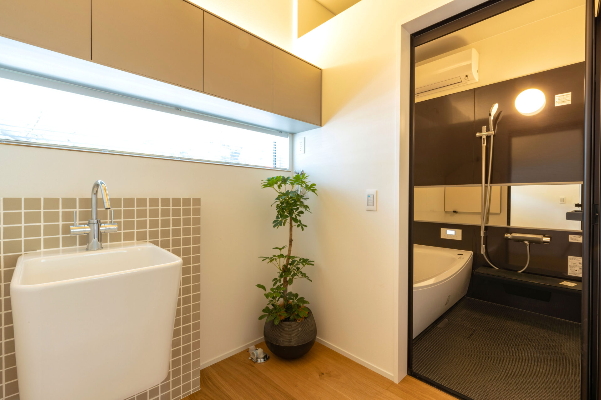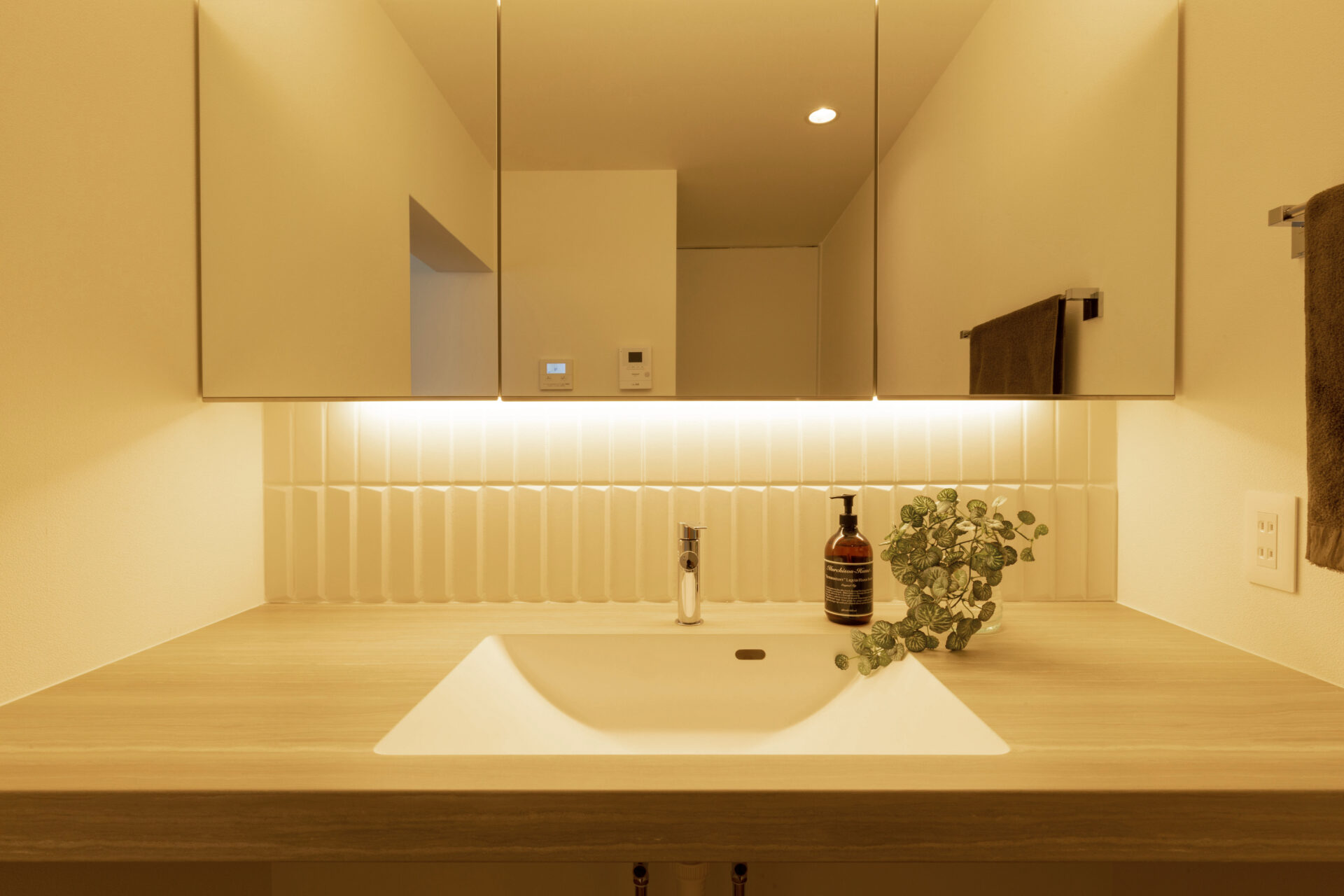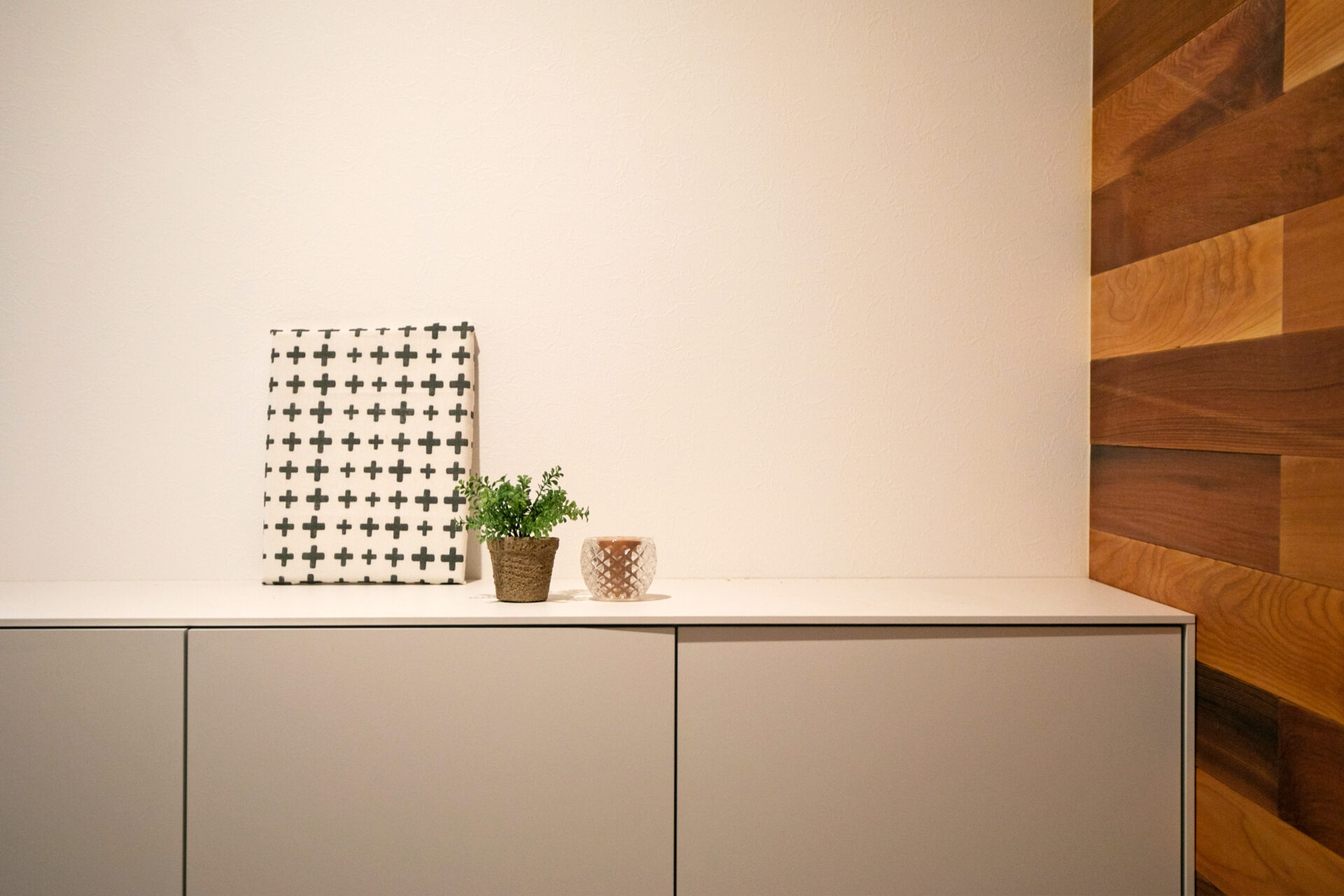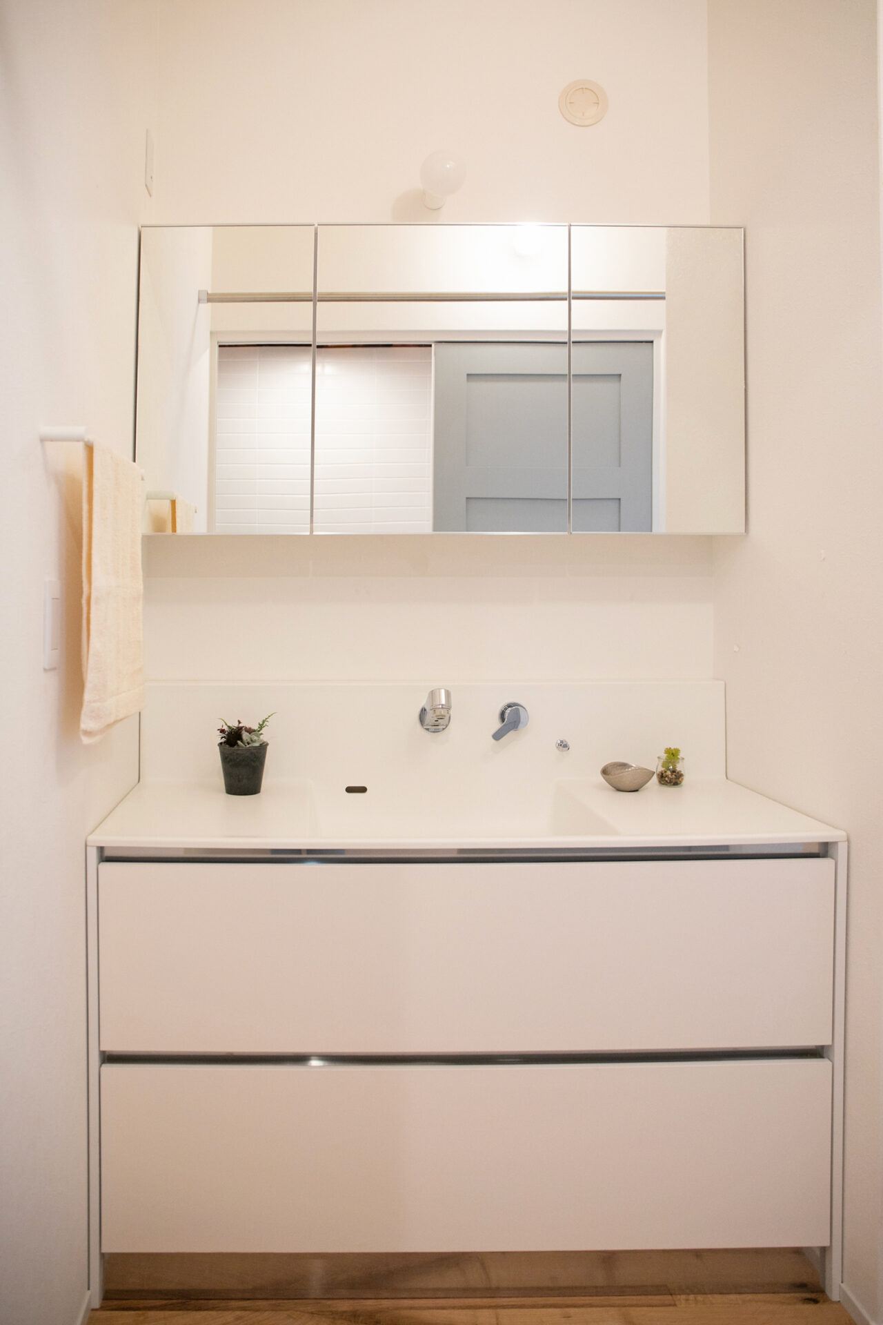 造作の棚や収納で、スッキリと暮らせる住まいです。