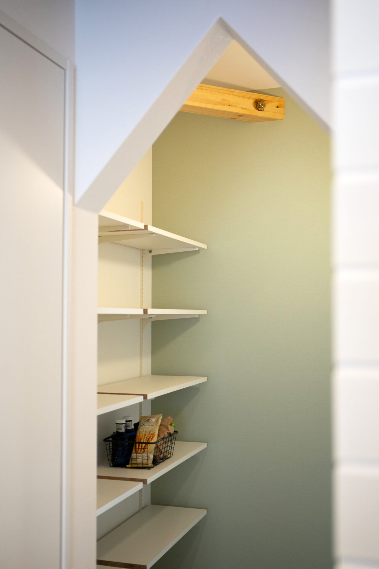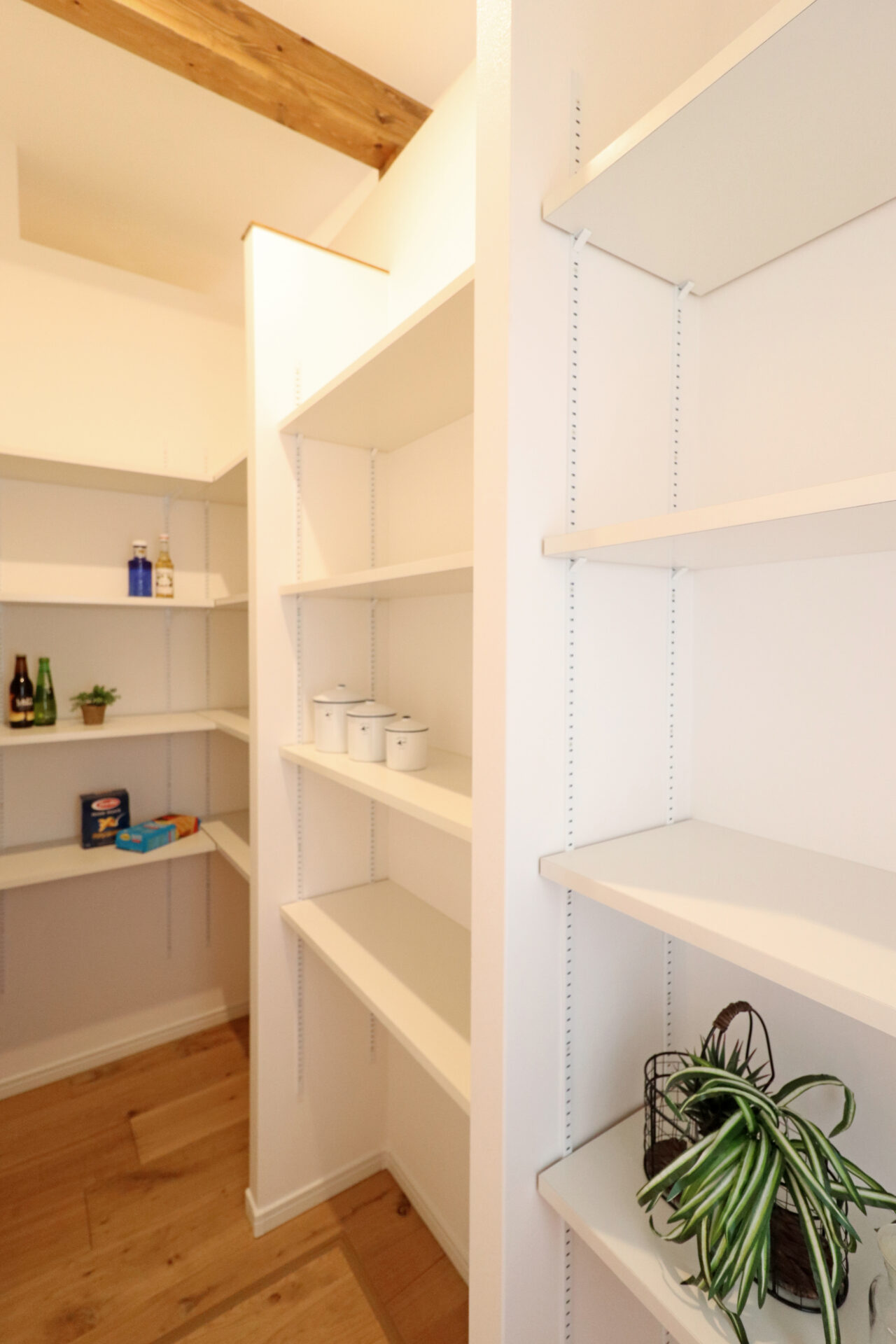 キッチン横のパントリーは抜群の収納量で使い勝手がよく、忙しい奥様の味方。絶妙なニュアンスでまとめられた大人可愛いオシャレな住まいが完成しました。 - #FLAT