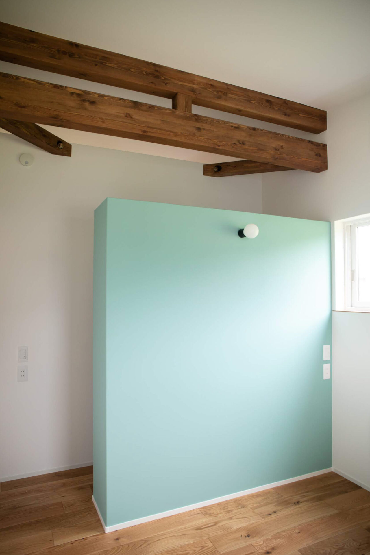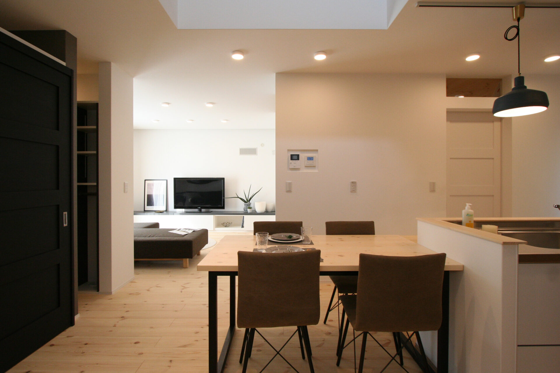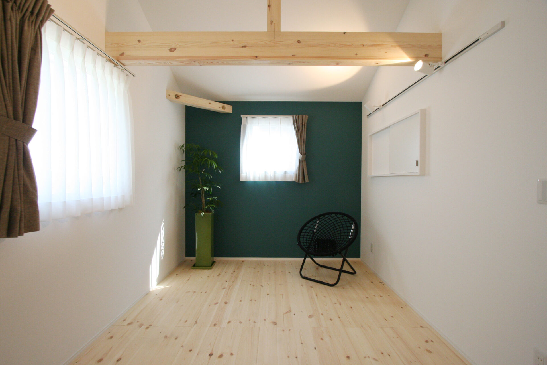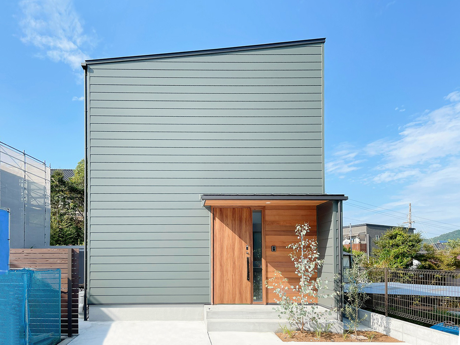 外壁は人気のモスグリーン!LDKは横長のレイアウトで家族みんなが使いやすくシンプルな間取り。