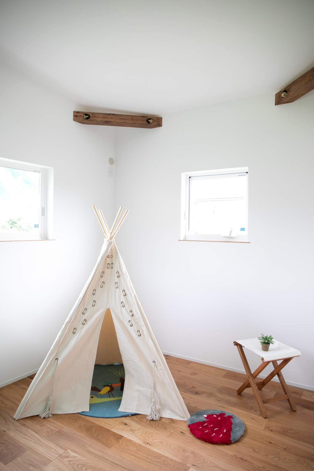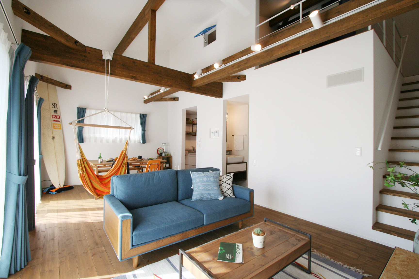 室内は大きな吹き抜けのある開放的なリビング。大きな梁にハンモックを掛けてくつろいだり、2Fのフリースペースでは子供たちが駆け回る声が今にも聞こえてきそうです。 - #SQUARE