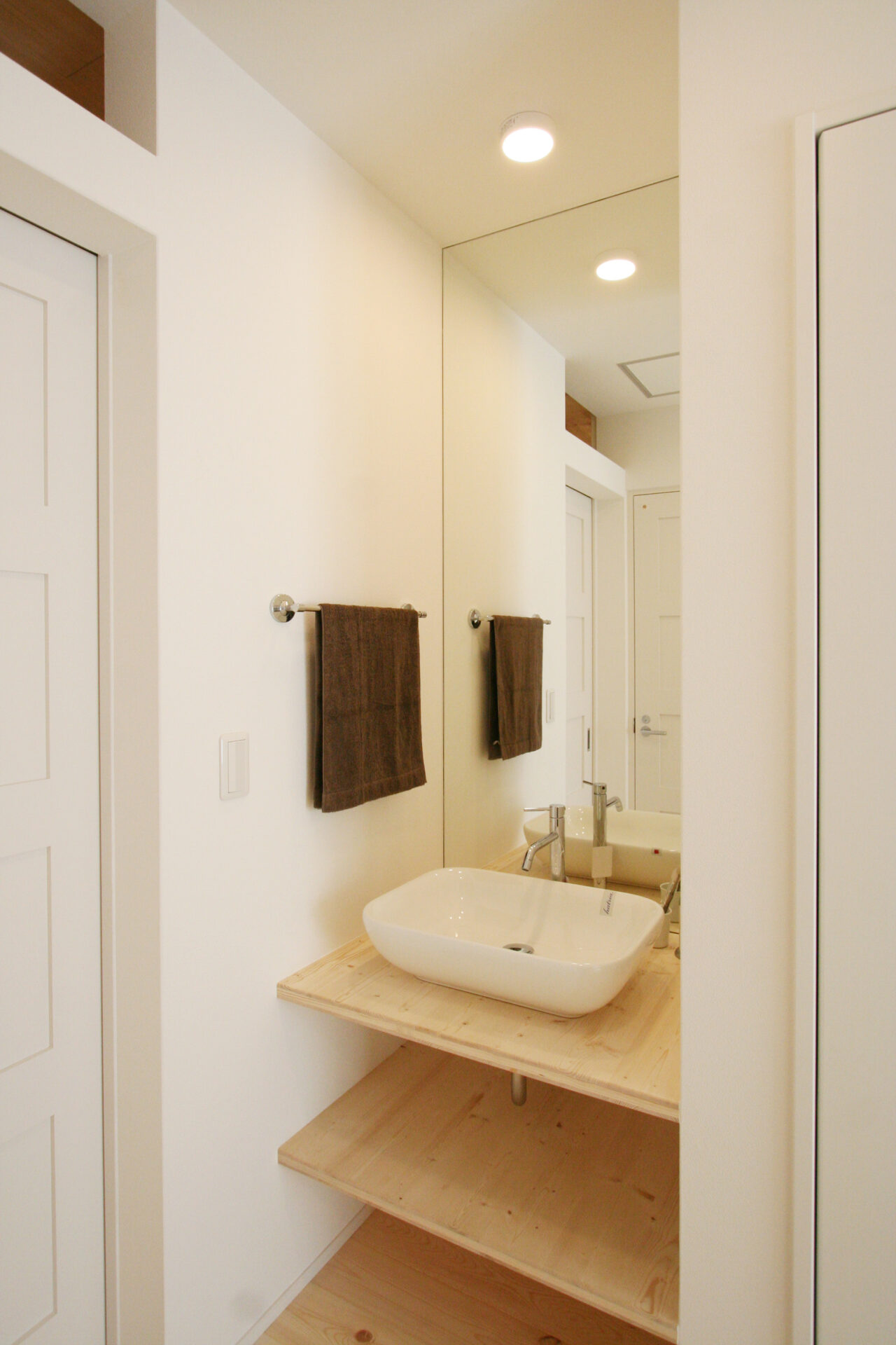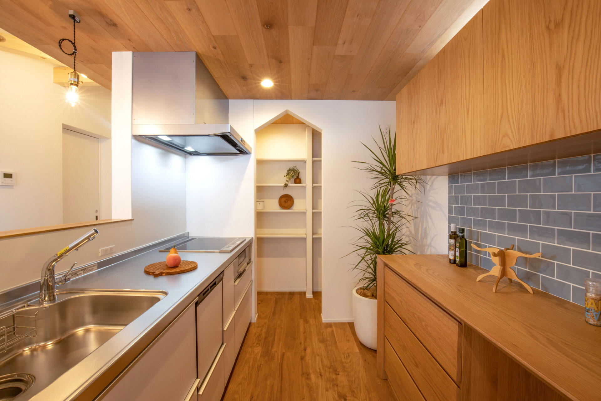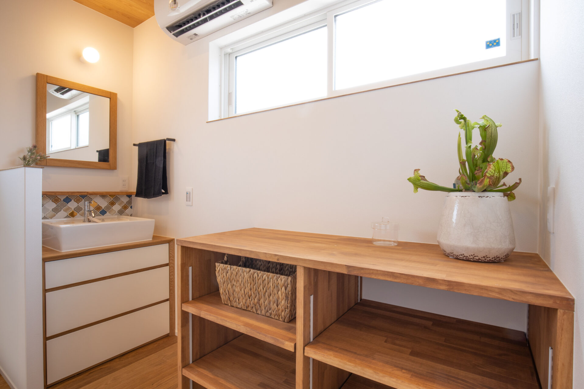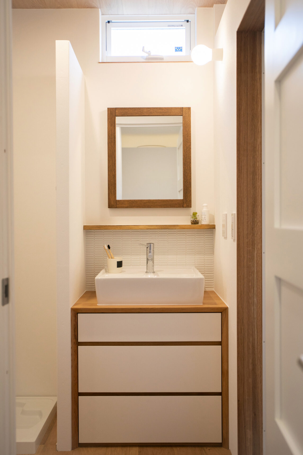 キッチンは見せる収納と隠す収納でオシャレな空間へ。オリジナル洗面台の回りには水廻りをまとめ家事動線を効率的にしました。 - #Snufkin