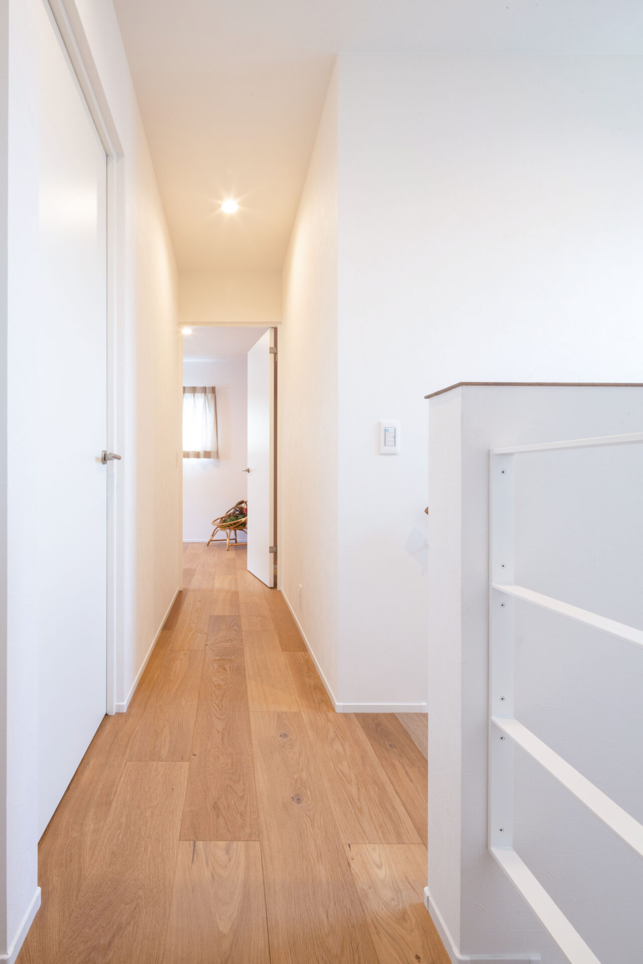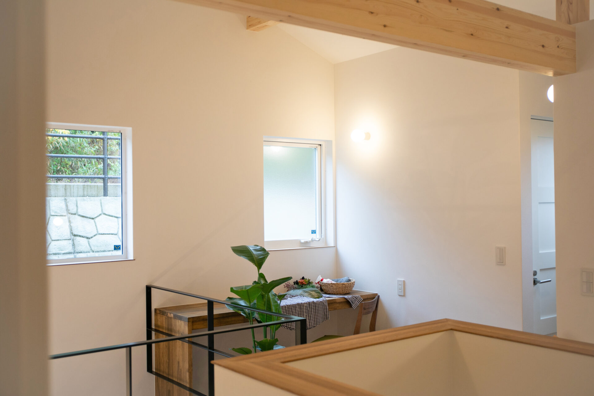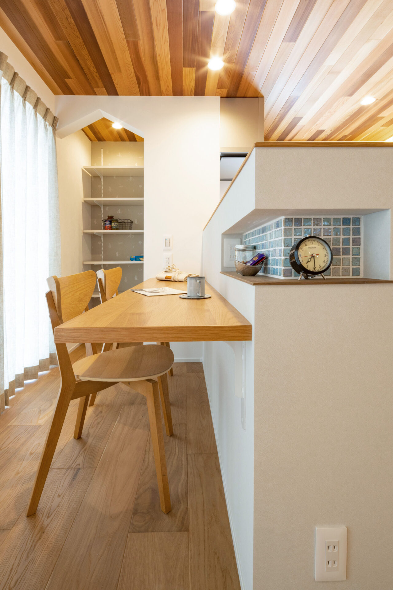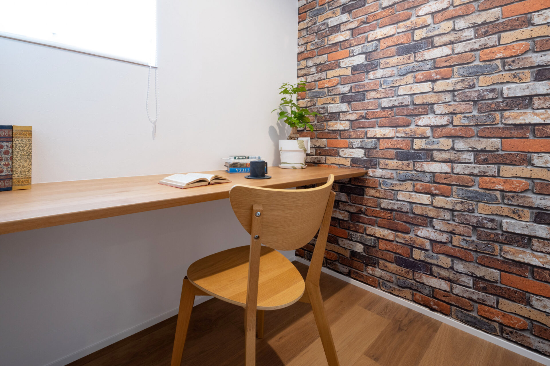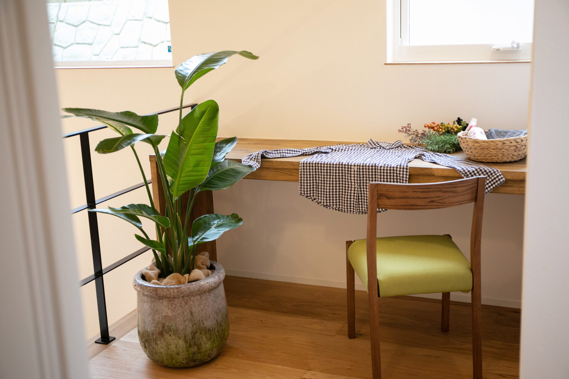 2階ホールには家事スペースとしても大活躍する造作の机を製作し、1階にいる家族の気配を感じながら作業ができます。