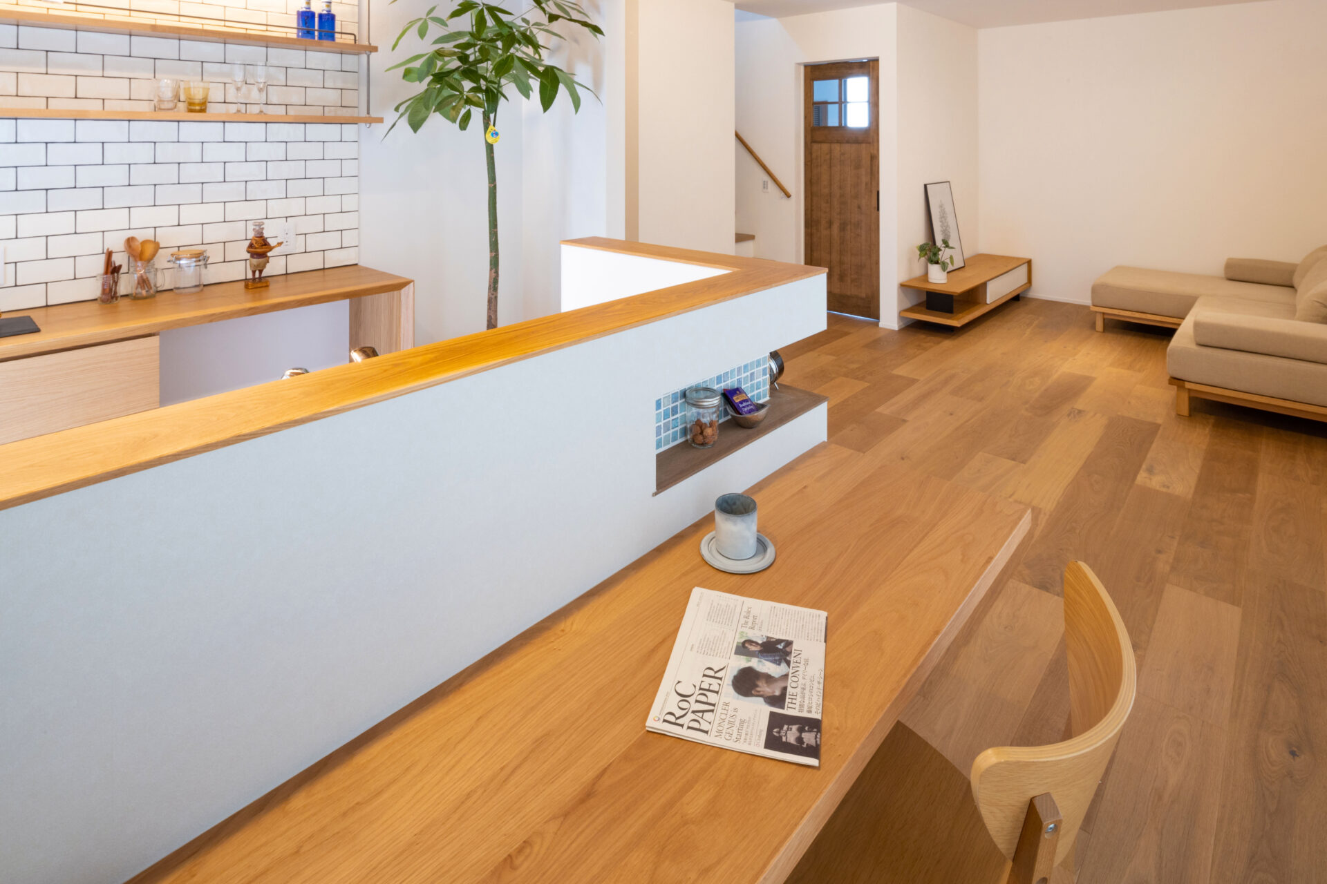 LDKのカウンターデスクは、子供の勉強やちょっとした家事もできる便利なスペース。水まわりがまとまっているので、家事もしやすい動線のお家です。 - #B&M